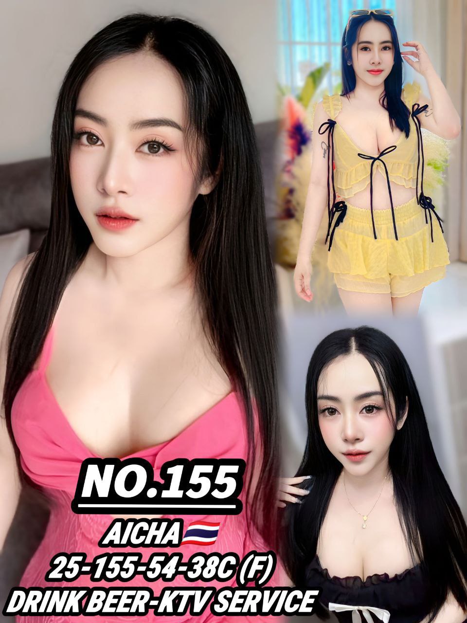 Hi, I’m AICHA 155 from Thailand. I’m 25 years old, charming, fun, and ready to make your time unforgettable. Choose me to escort with you with these services including 69, Blow Job, Fuck Job, Kissing, Massage, Overnight, Shower. B2B massage with InCall and OutCall service are available!